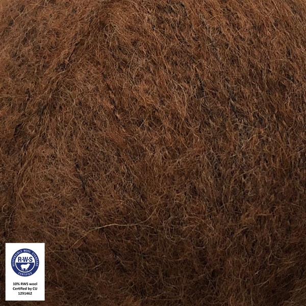54% baby alpaca, 10% merinoull (mulesing free) og 36% lyocell. 25 g / 200 m, anbefalt pinnestørrelse 3–4 mm.