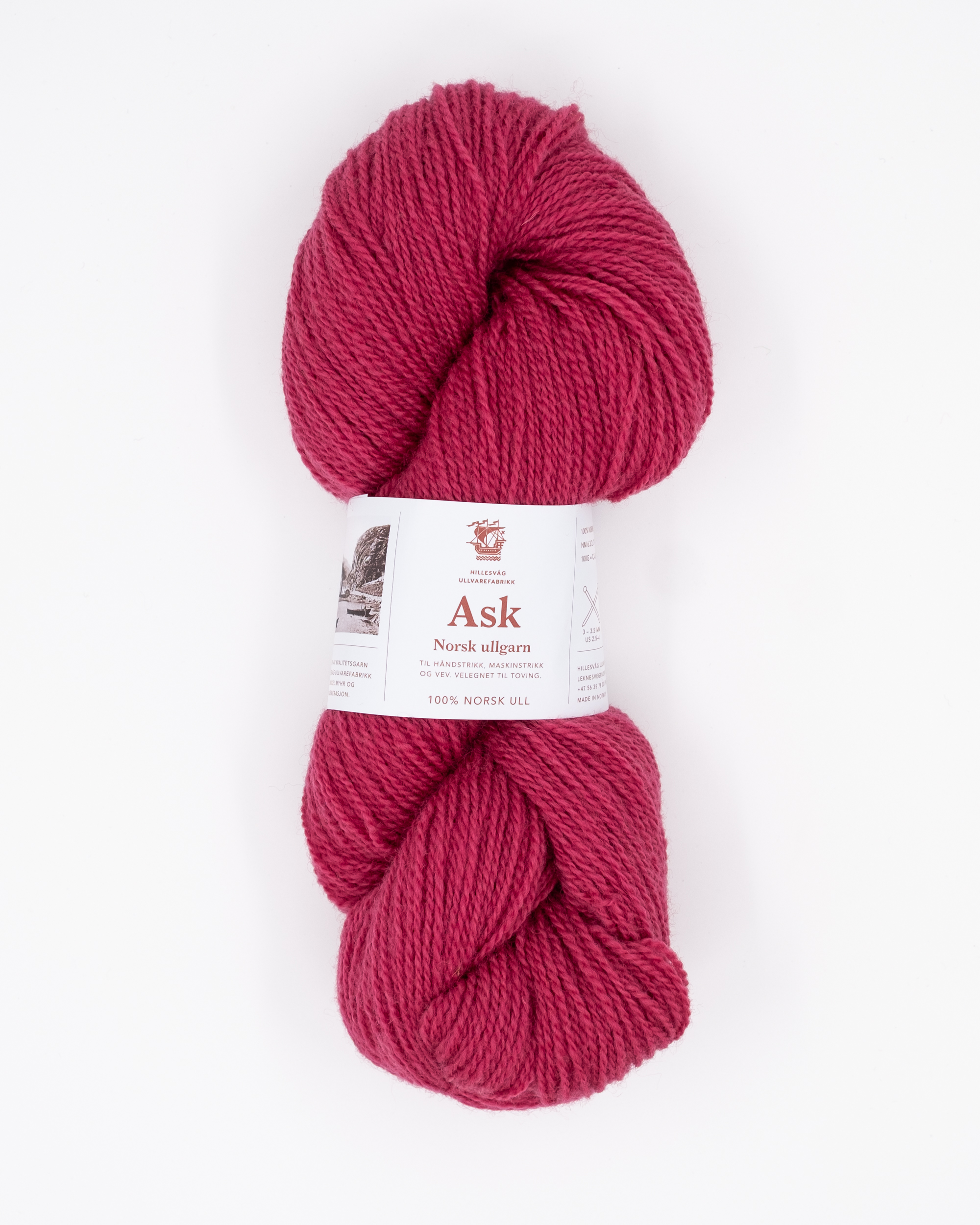 Ask ullgarn er et 2-trådet, drøyt og luftig kardegarn. Garnet er spunnet av 100% norsk ull. Ask ullgarn egner seg godt til plagg både til barn og voksne, de blir lette og varmer godt. Garnet er også velegnet til toving eller til veving.