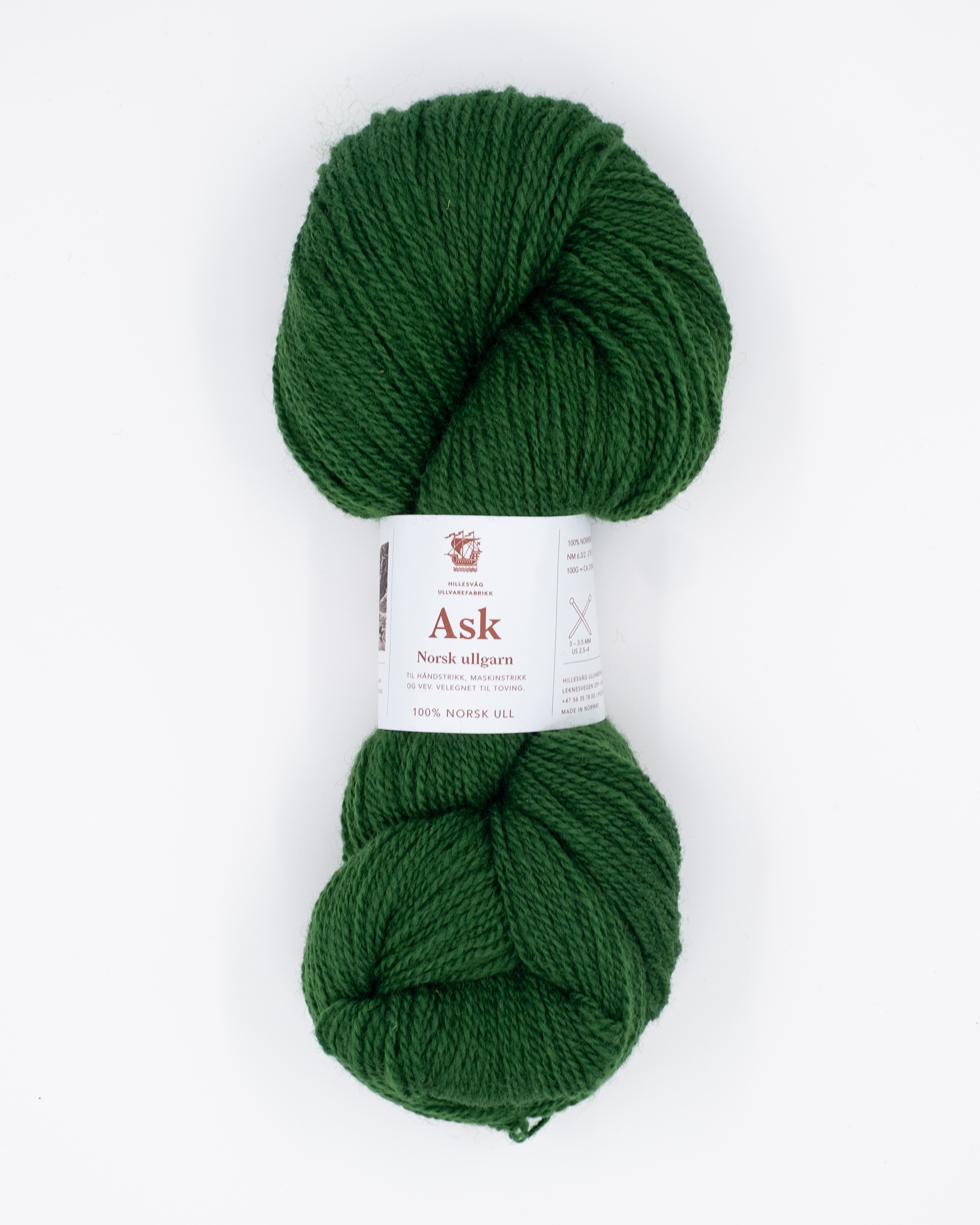 Ask ullgarn er et 2-trådet, drøyt og luftig kardegarn. Garnet er spunnet av 100% norsk ull. Ask ullgarn egner seg godt til plagg både til barn og voksne, de blir lette og varmer godt. Garnet er også velegnet til toving eller til veving.