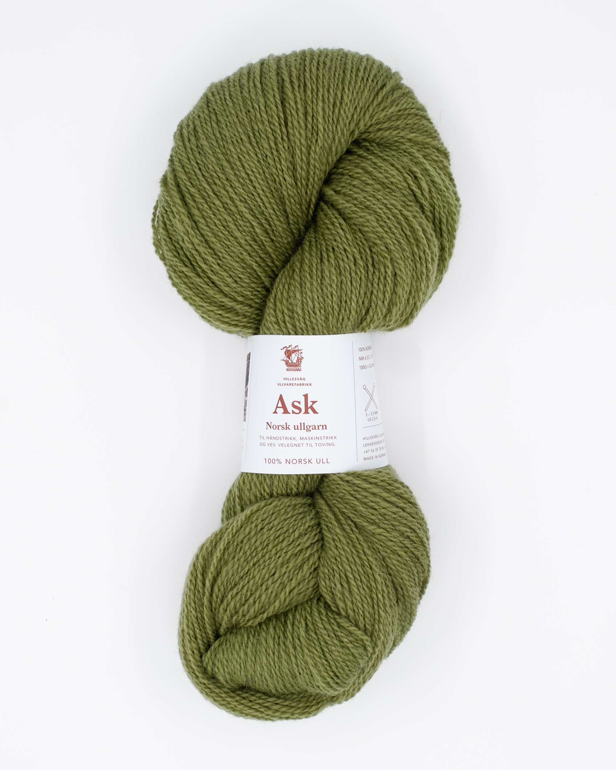 Ask ullgarn er et 2-trådet, drøyt og luftig kardegarn. Garnet er spunnet av 100% norsk ull. Ask ullgarn egner seg godt til plagg både til barn og voksne, de blir lette og varmer godt. Garnet er også velegnet til toving eller til veving.