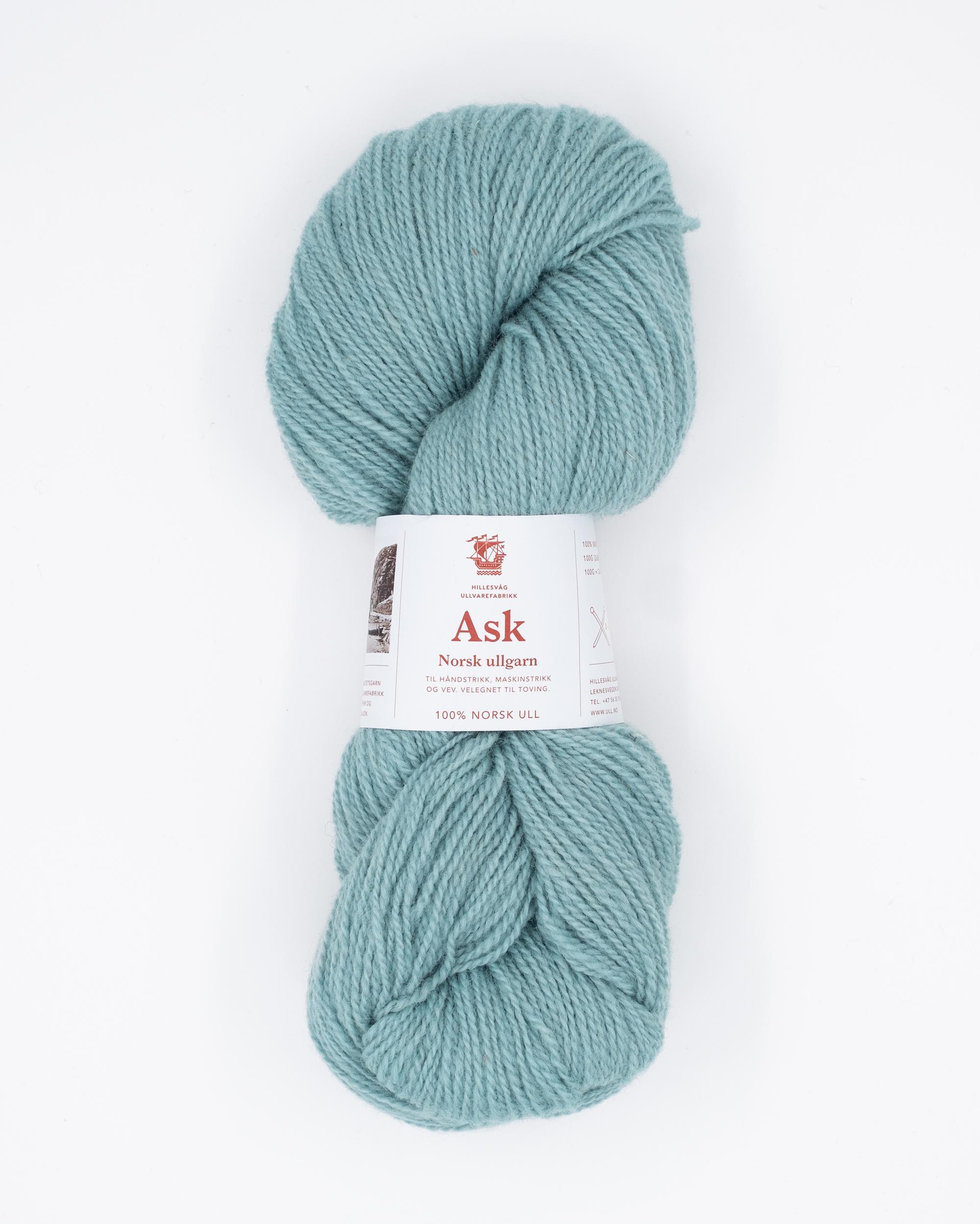 Ask ullgarn er et 2-trådet, drøyt og luftig kardegarn. Garnet er spunnet av 100% norsk ull. Ask ullgarn egner seg godt til plagg både til barn og voksne, de blir lette og varmer godt. Garnet er også velegnet til toving eller til veving.