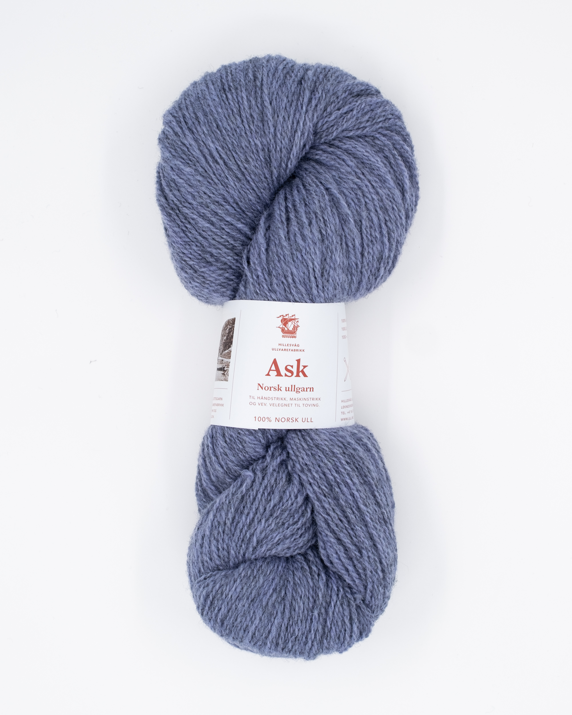 Ask ullgarn er et 2-trådet, drøyt og luftig kardegarn. Garnet er spunnet av 100% norsk ull. Ask ullgarn egner seg godt til plagg både til barn og voksne, de blir lette og varmer godt. Garnet er også velegnet til toving eller til veving.